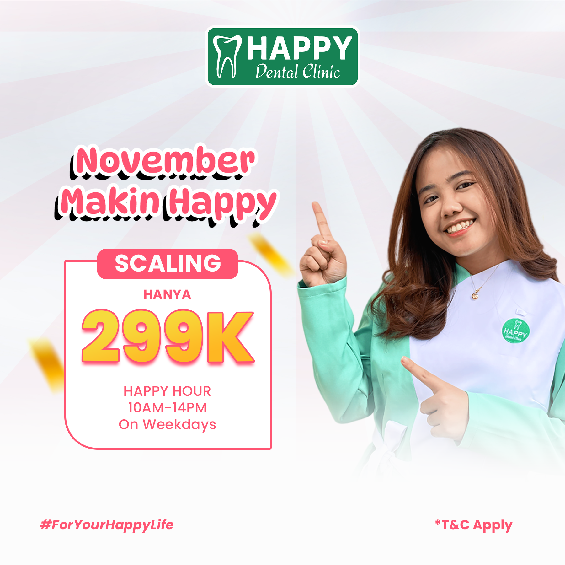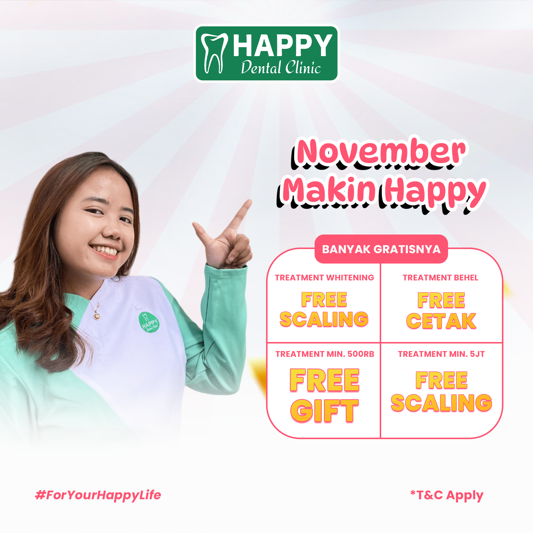 Setelah menjalani treatment teeth whitening di Happy Dental Clinic aku suka banget karena hasilnya natural dan putihnya alami. Terima kasih Happy Dental Clinic.