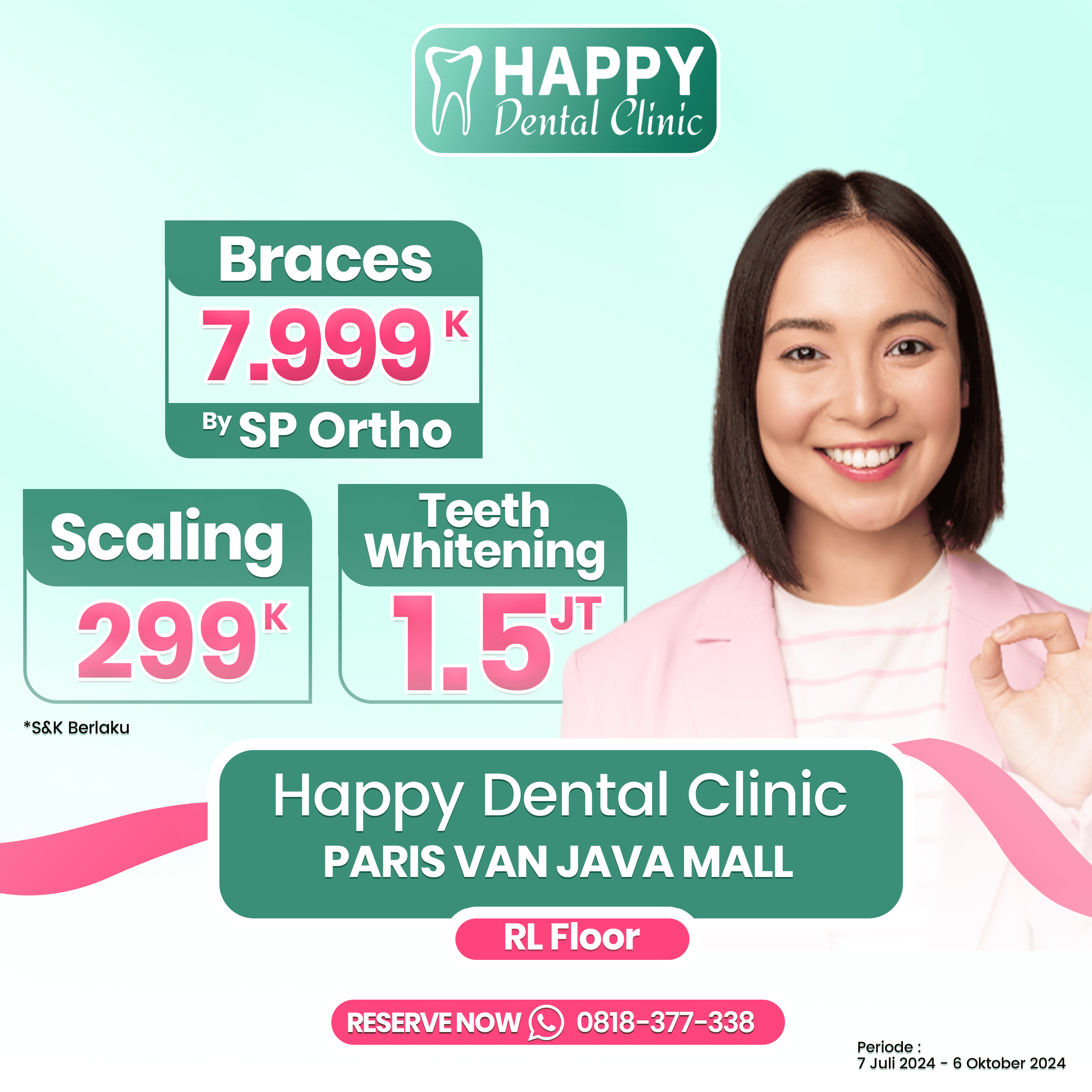 Setelah menjalani treatment teeth whitening di Happy Dental Clinic aku suka banget karena hasilnya natural dan putihnya alami. Terima kasih Happy Dental Clinic.