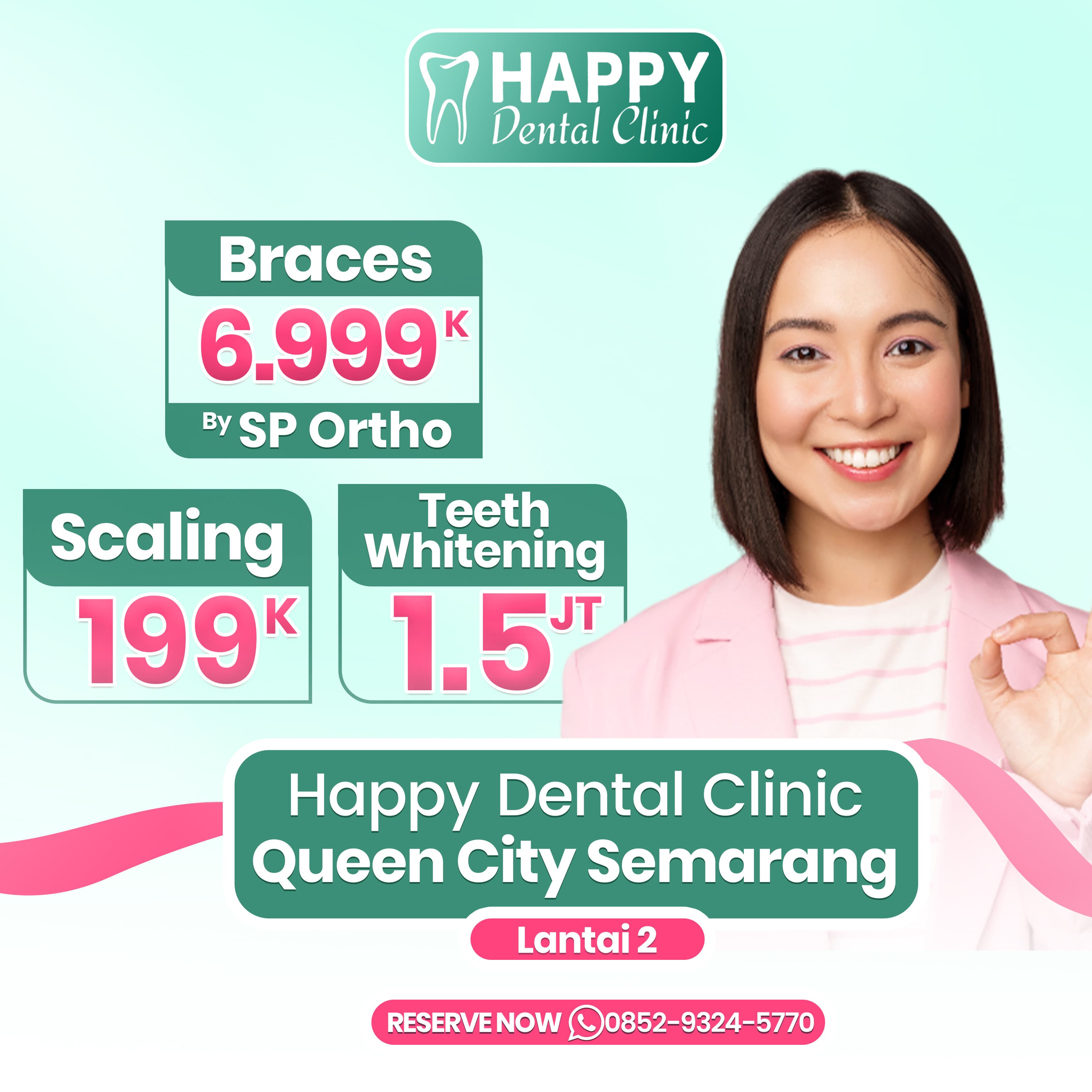 Setelah menjalani treatment teeth whitening di Happy Dental Clinic aku suka banget karena hasilnya natural dan putihnya alami. Terima kasih Happy Dental Clinic.